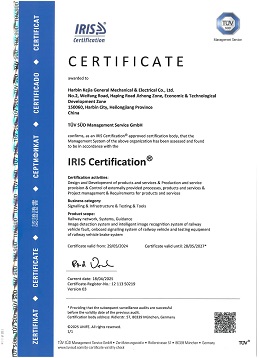 IRIS(國際鐵路行業(yè)標(biāo)準(zhǔn))認(rèn)證證書